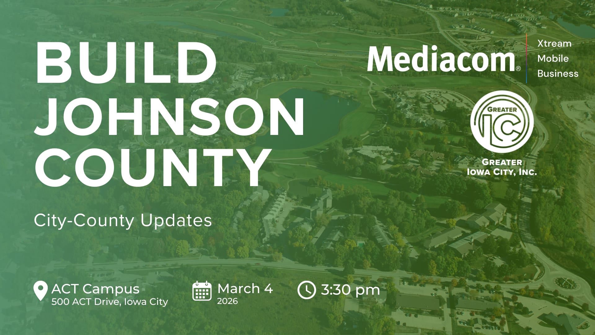 Join us on March 4th at 3:30 PM at the ACT Campus in Iowa City for the City-County Update, hosted by Greater Iowa City, Inc..
