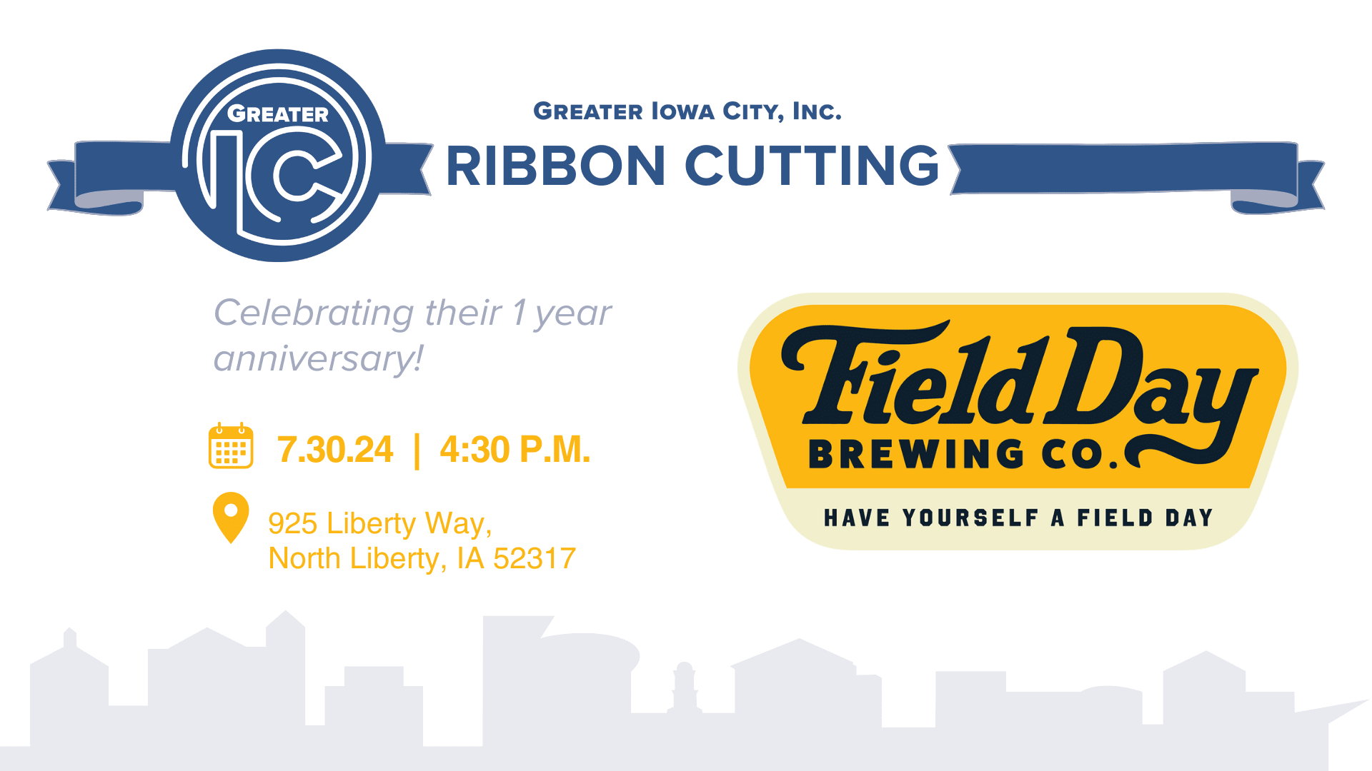 All are invited to celebrate Field Day Brewing Co.'s 1-year anniversary with a Ribbon Cutting! Meet the people behind the business, enjoy the indoor & outdoor spaces, and support an organization that is growing and investing in our area.