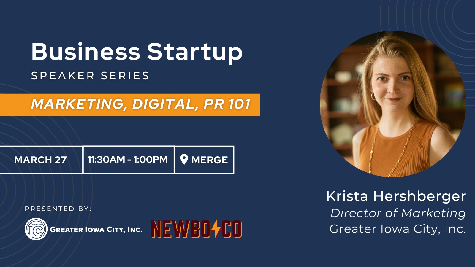 Join us in Iowa City on Wednesday, March 27th from 11:30am - 1:00pm for Marketing / Digital / PR 101 for Small Businesses.