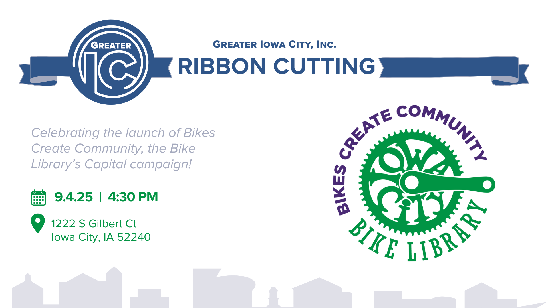Join us for the official launch of Bikes Create Community, a $1 million capital campaign that will support the expansion of the Bike Library’s staff and facility capacity to better serve the Iowa City community.