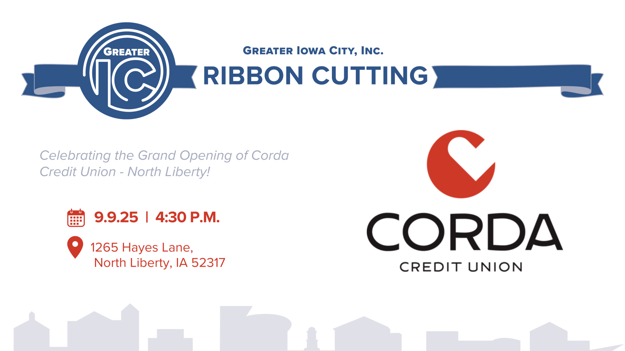 All are invited to the Grand Opening of Corda Credit Union in North Liberty!