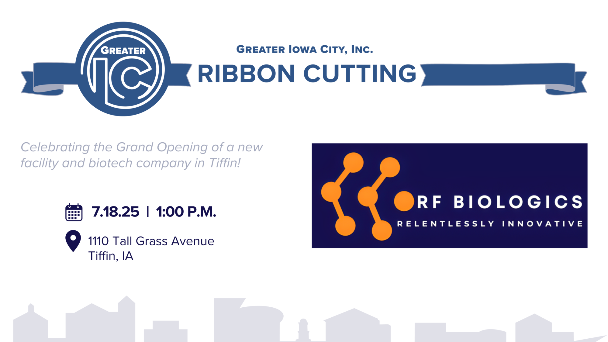 ORF Biologics is proud to officially open the doors to its brand-new headquarters, located in Tiffin. This mission-driven biotechnology company is advancing high-impact biologics for human health, animal health, and national defense, all from right here in the Iowa corridor. With cutting-edge synthetic biology platforms and full bioproduction capabilities on site, ORF Biologics is pioneering next-generation solutions that are built for performance, safety, and national resilience.