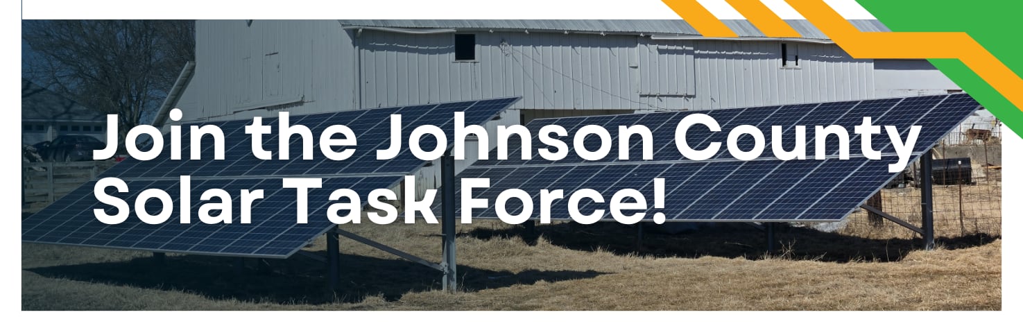 County businesses and solar energy advocates have come together to launch the Johnson County Solar Task Force. We work to advance solar energy in Johnson County through advocacy, outreach, accurate information dissemination, and other initiatives with the goal of 10% of the county’s energy produced by small-scale solar energy in 2035.